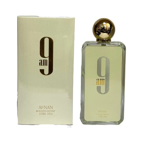 - AFNAN 9 am EDP Spray 3.4 oz For Men Top notes: Lemon Mandarin orange Pink pepper Cardamom. Heart notes: Green Lavender Orange blossom Rose. Base notes: Musk Moss Patchouli Cedar.